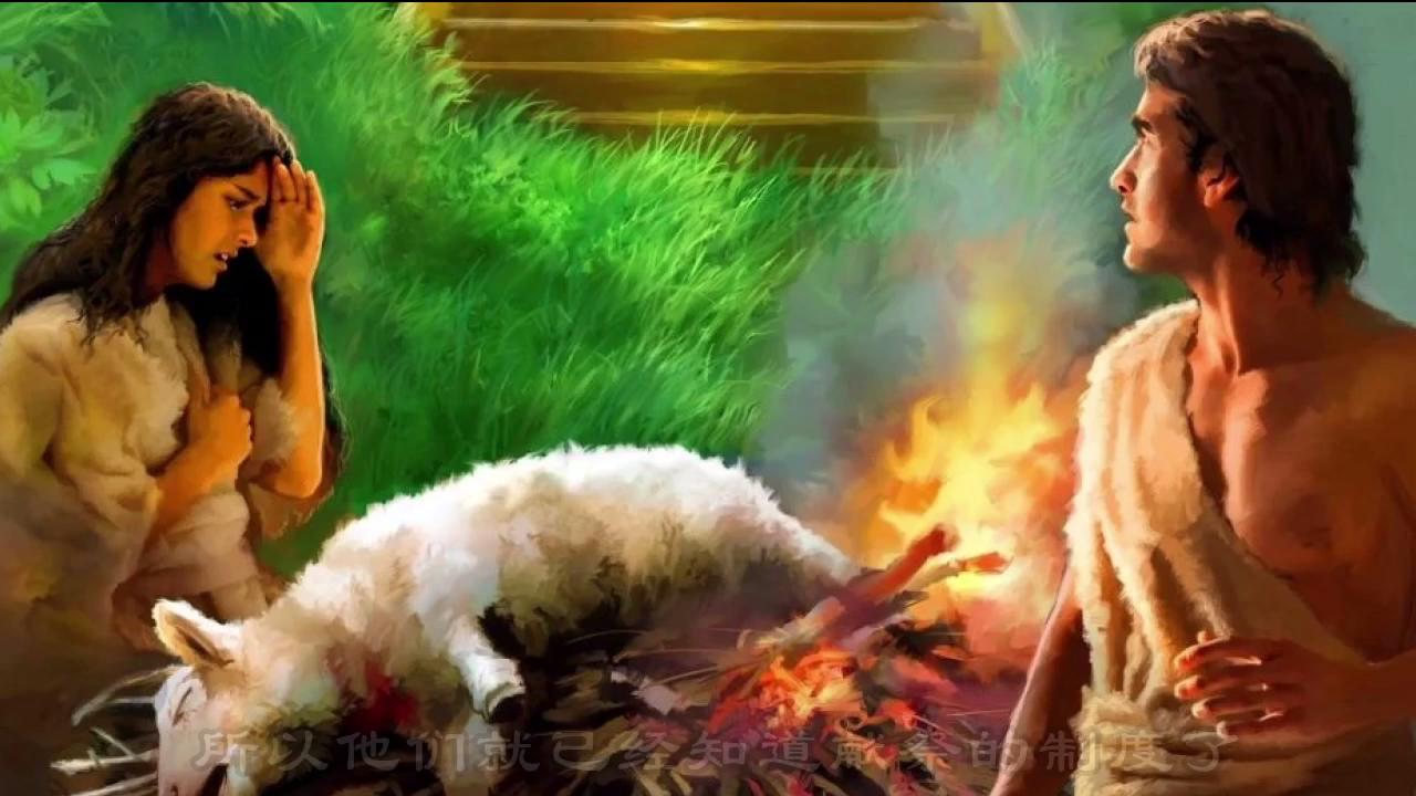 人类堕落之后,除了上帝向他们颁布的这个十诫,也就是律法附加的条律,还做了一件事情是什么?就是设立了什么制度?——献祭的制度。所以在伊甸园里,这个献祭的制度也建立起来了。那为什么要他们献祭呢?——是为了让他们牢记,他们随从撒旦犯罪究竟导致了什么结果。那么违背上帝,违背上帝的命令,这个刑罚便是死亡,是为了让我们记住这样一个事实。同时,每当他们杀羊献祭的时候,是为了让他们能够谦卑,能够悔改,并且是为了教导他们要仰望上帝的儿子赎罪的功劳,要藉着悔改的心,从上帝的儿子那里得到饶恕。